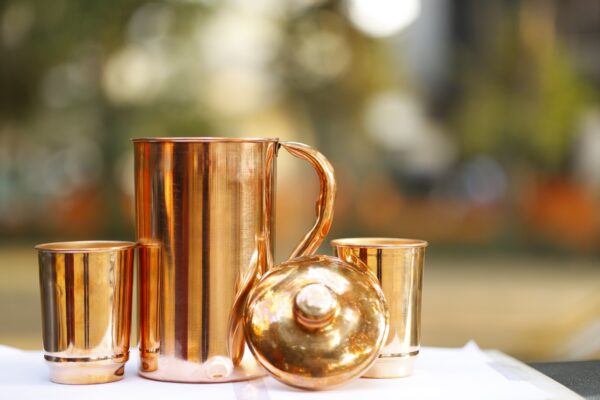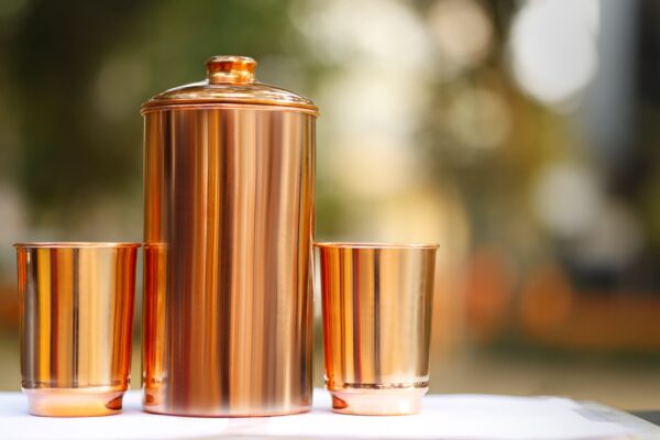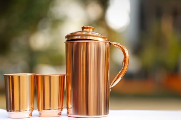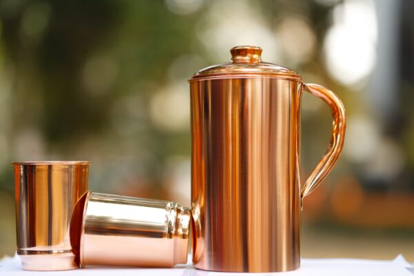 Handcrafted Pure Copper Plain Jug with 2 Tumblers – Ayurvedic Water Set